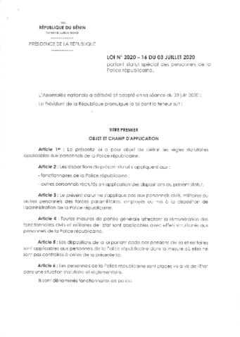 LOI N°2020-16 du 03 Juillet 2020