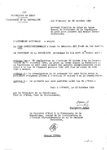LOI N°94-012 DU 06 OCTOBRE 1994