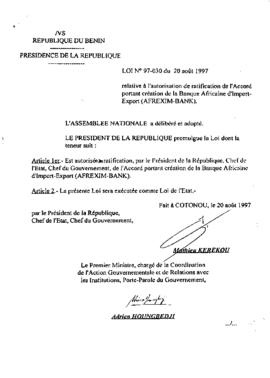 LOI N°97-030 DU 20 AOÛT 1997
