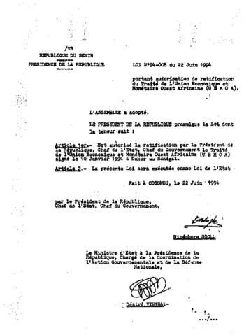 portant autorisation de ratification du Traité de l'Union Économique et Monétaire Ouest-Africaine (UEMOA)