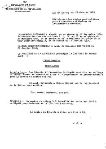définissant les règles particulières pour l'élection des membres de l'Assemblée Nationale
