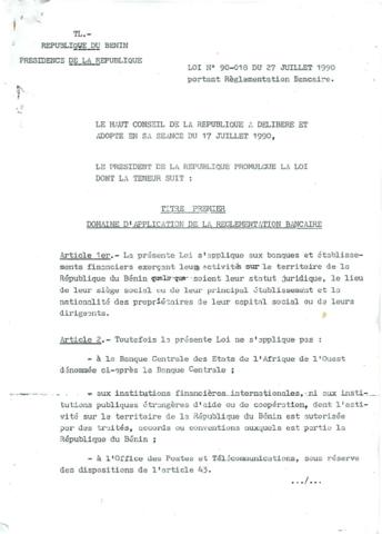 LOI N°90-018 DU 27 JUILLET 1990