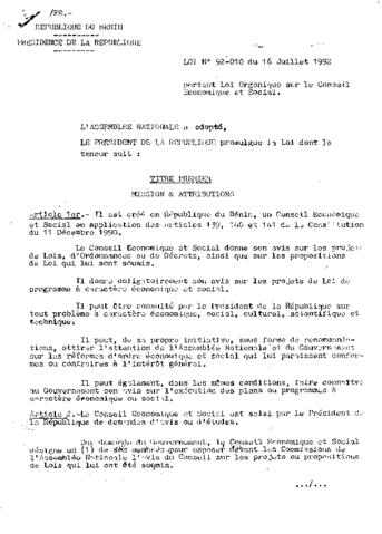 LOI N°92-010 DU 16 JUILLET 1992