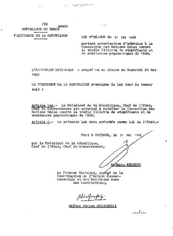 portant autorisation d'adhésion à la Convention on des Nations Unies contre le trafic illicite de stupéfiants et de substances psychotropes de 1988.