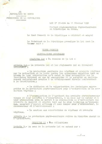 portant autorisation de ratification de l'Accord de prêt signé le 27 Novembre 1996 entre la République du Bénin et la Banque Islamique de Développemen...