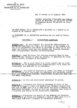 portant modalités d'élection des Responsables de Quartier, de ville, des villages et Communes durant a période de Transition.