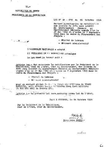 LOI N°94-018 DU 04 OCTOBRE 1994