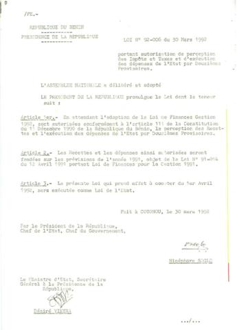 LOI N°92-006 DU 30 MARS 1992