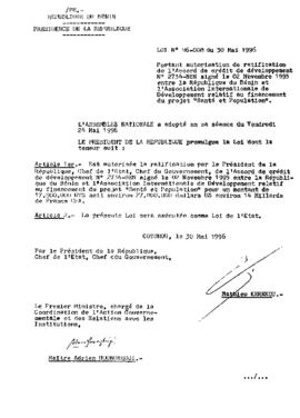 portant autorisation de ratification de l'Accord de Crédit de Développement N° 271~ signé le 19 Mai 1995 entre la République du Bénin et l'Association...