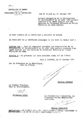 portant abrogation de la Décision-Loi N° 89-009/ANR/CP du 30 Août 1989 portant création d’un Impôt Spécial sur les salaires du Personnel Béninois du P...