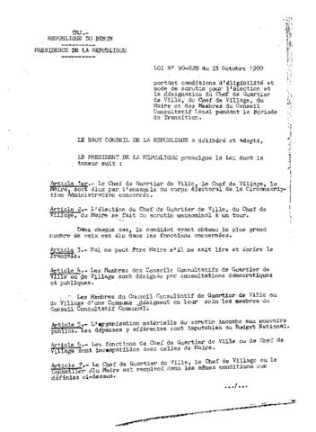 LOI N°90-029 du 23 octobre 1990