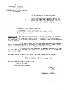 LOI N0°94-002 du 28 Février 1994