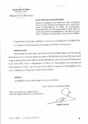 LOI N°2018-25 du 02 Août 2018
