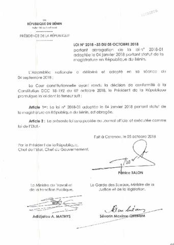 LOI N° 2018-33 DU 05 Octobre 2018