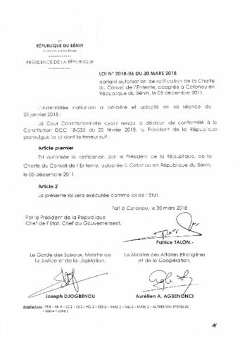 LOI N°2018-06 DU 30 Mars 2018