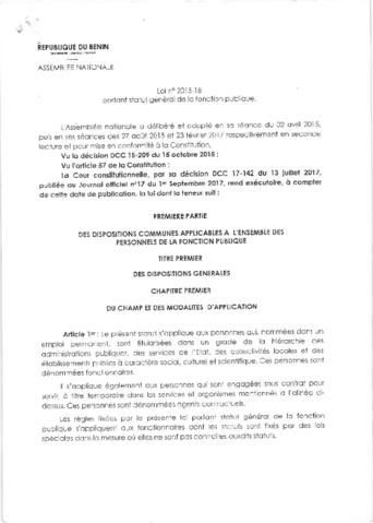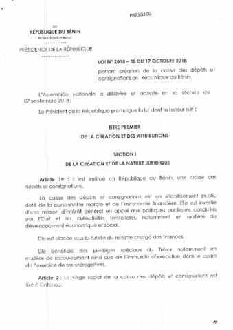LOI N° 2018 - 38 DU 17 OCTOBRE 2018