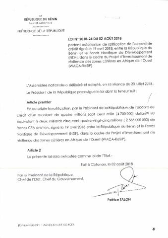 LOI N° 2018-24 DU 02 août 2018