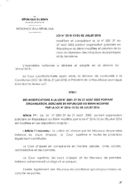 LOI N° 2018-13 DU 02 Juillet 2018