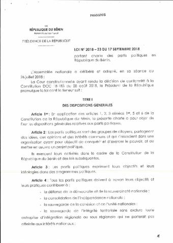 LOI N° 2018-23 DU 17 septembre 2018