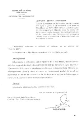 LOI N°2019-03 du 17 Janvier 2019
