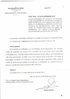LOI N°2018-27 du 03 Septembre 2018