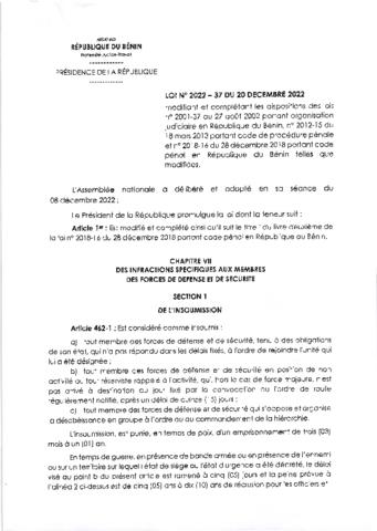 LOI N°2022-37 DU 20 DECEMBRE 2022