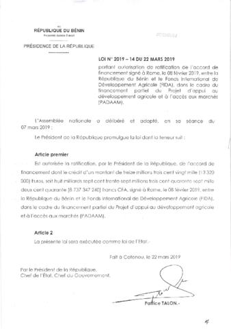 LOI N°2019-14 DU 22 MARS 2019