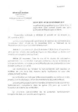 LOI N°2018-41 DU 15 NOVEMBRE 2019