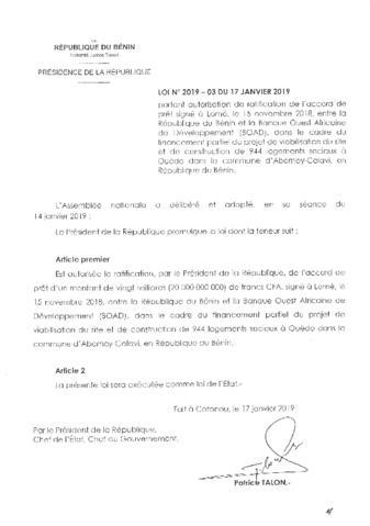 LOI N°2019-03 du 17 Janvier 2019