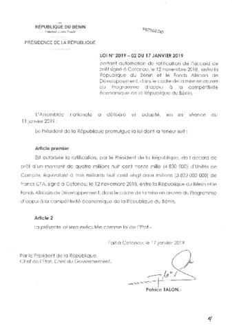 LOI N°2019-02 DU 17 JANVIER 2019