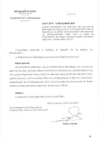 LOI N°2019-16 du 22 Mars 2019