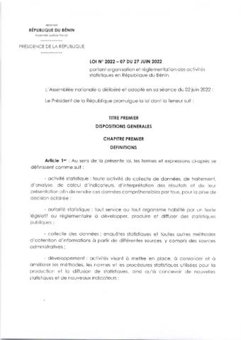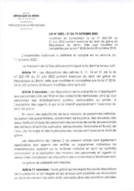 LOI N°2022-21 DU 19 OCTOBRE 2022