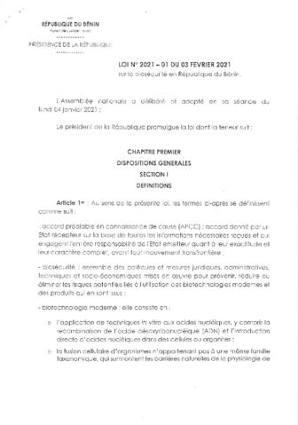 LOI N°2021-01 du 03 Février 2021