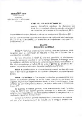 LOI N°2001-11 du 20 Décembre 2021