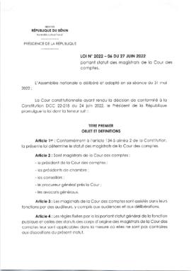 LOI N°2022-06 DU 27 JUIN 2022