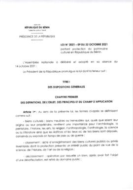 LOI N°2021-09 DU 22 OCTOBRE 2021