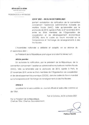 LOI N°2021-06 DU 04 OCTOBRE 2021