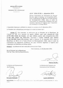 LOI N°2016-35 DU 26 DECEMBRE 2016