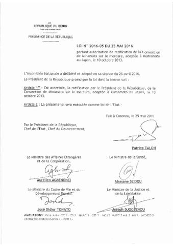 portant autorisation de ratification de la convention de Minimata sur le mercure, adoptée à Kumanoto au japon, le 10 octobre 2013