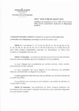 LOI N°2016-15 DU 28 JUILLET 2016