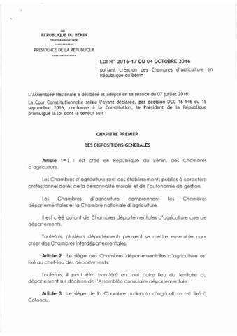 LOI N°2016-17 DU 04 OCTOBRE 2016