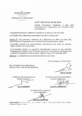 portant autorisations d'adhésions à deux (02) Convention de l'Organisation de l'Aviation Civile Internationale