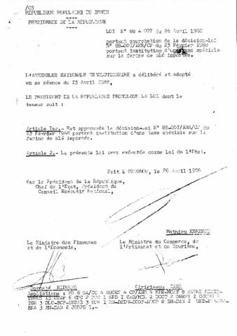 portant approbation de la décision n°88-001/ANR/CP du 23 Février 1988 portant institution d'une taxe spéciale sur la farine de blé importée.