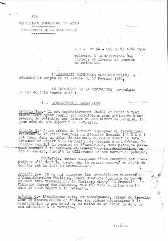 LOI N°84-006 du 15 Mars 1984