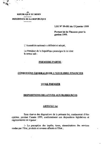 portant loi de finances pour la gestion 1999