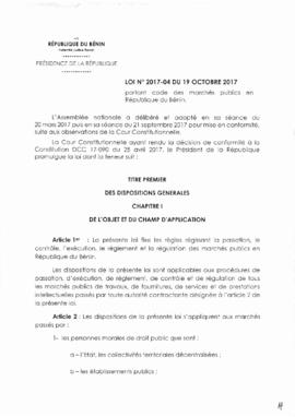 LOI N°2017-04 du 19 Octobre 2017