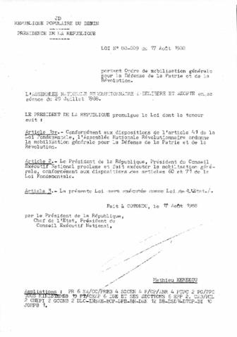 portant Ordre de mobilisation générale pour la défense de la Patrie et de la Révolution