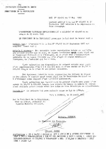 LOI N°89-009 DU 12 MAI 1989