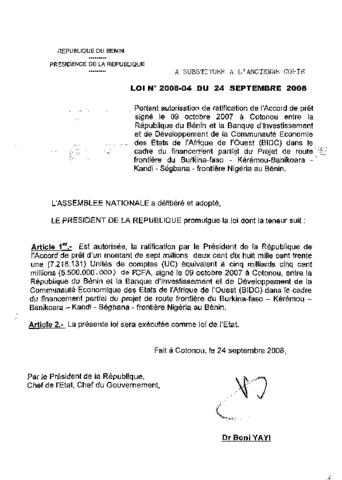 LOI N°2008-04 DU 24 SEPTEMBRE 2008