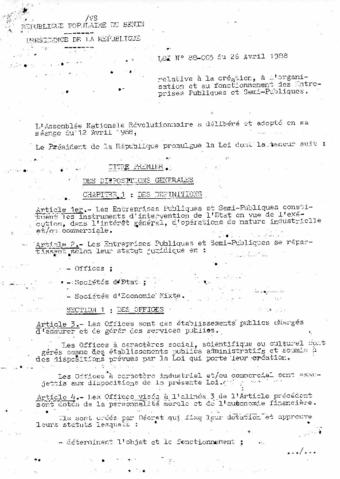 relative à la création, à l'organisation et au fonctionnement des entreprises publiques et semi-publiques